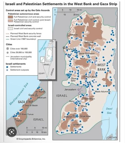 The map is referred to in the idea above. 2 or 3 States, or Provinces would be created by combining brown areas (where Arabs live) to become part of the county of New Palestine. Jewish settlers in large, small Medium sized settlements would now be living in the new country I call JudeaSamaria (JS) with dual citizenship - Israel & JS. For example the 2 brown ares at the top of the map would be combined to make 1 State, or Province. The 2 blue dots are Israel settlements.